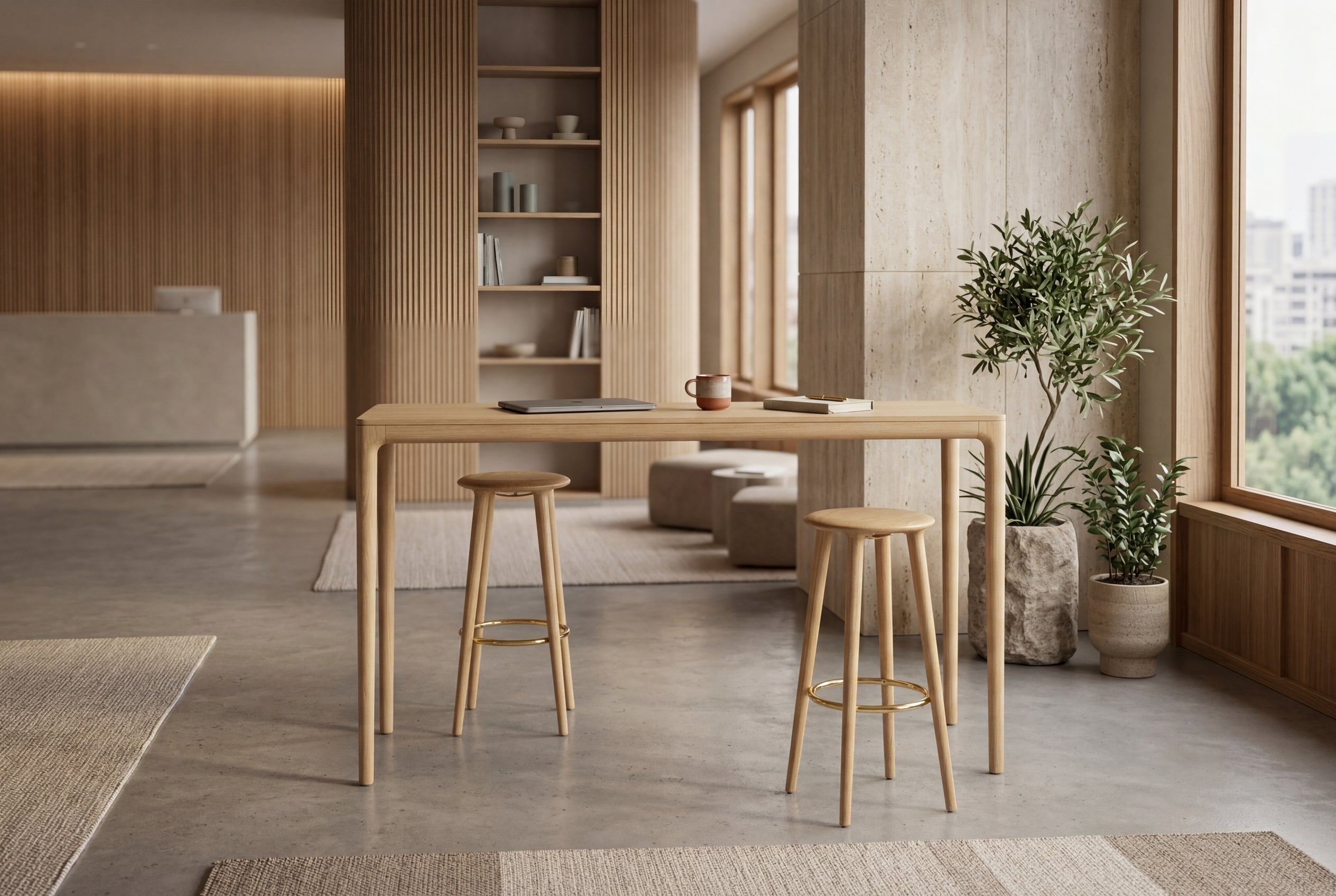 Møt våre nye Heart’n’Soul-bord, en raffinert utvidelse av kolleksjonen til moderne hospitality- og arbeidsmiljøer. Kjennetegnet av rene linjer og balanserte proporsjoner kombinerer bordene enkelhet med en tydelig arkitektonisk tilstedeværelse. Utført i eik fremhever designet materialets naturlige varme og karakter, samtidig som det bevarer et lett og løftet uttrykk. Serien er tilgjengelig som bar- og counterbord og tilbyr allsidige løsninger for kafeer, lounger og dynamiske kontormiljøer, hvor tidløst design og hverdagsfunksjonalitet møtes.