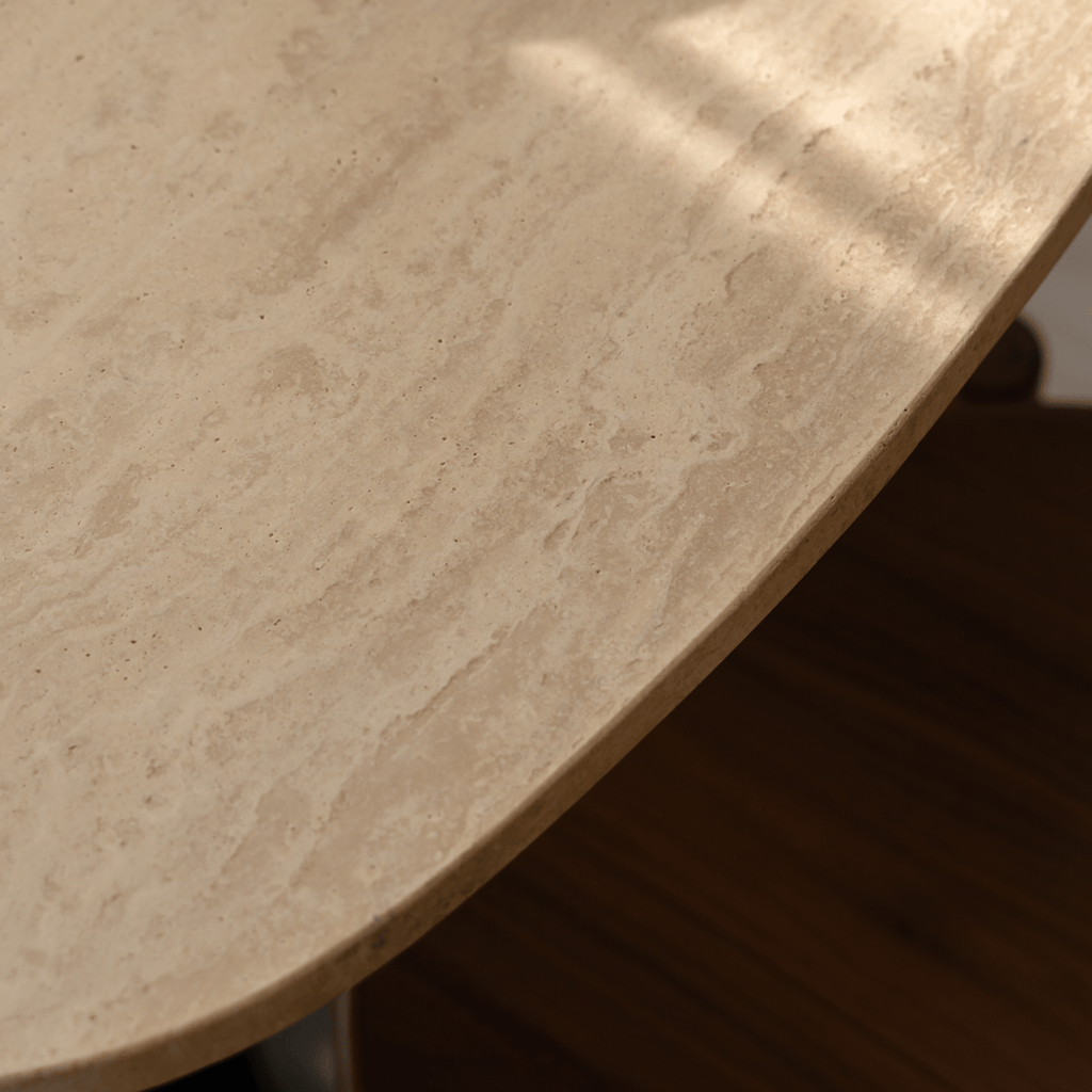Crafted from natural marble and travertine, each table tells a unique story. Over time, the surface develops a rich patina — a beautiful testament to its authenticity and timeless character.