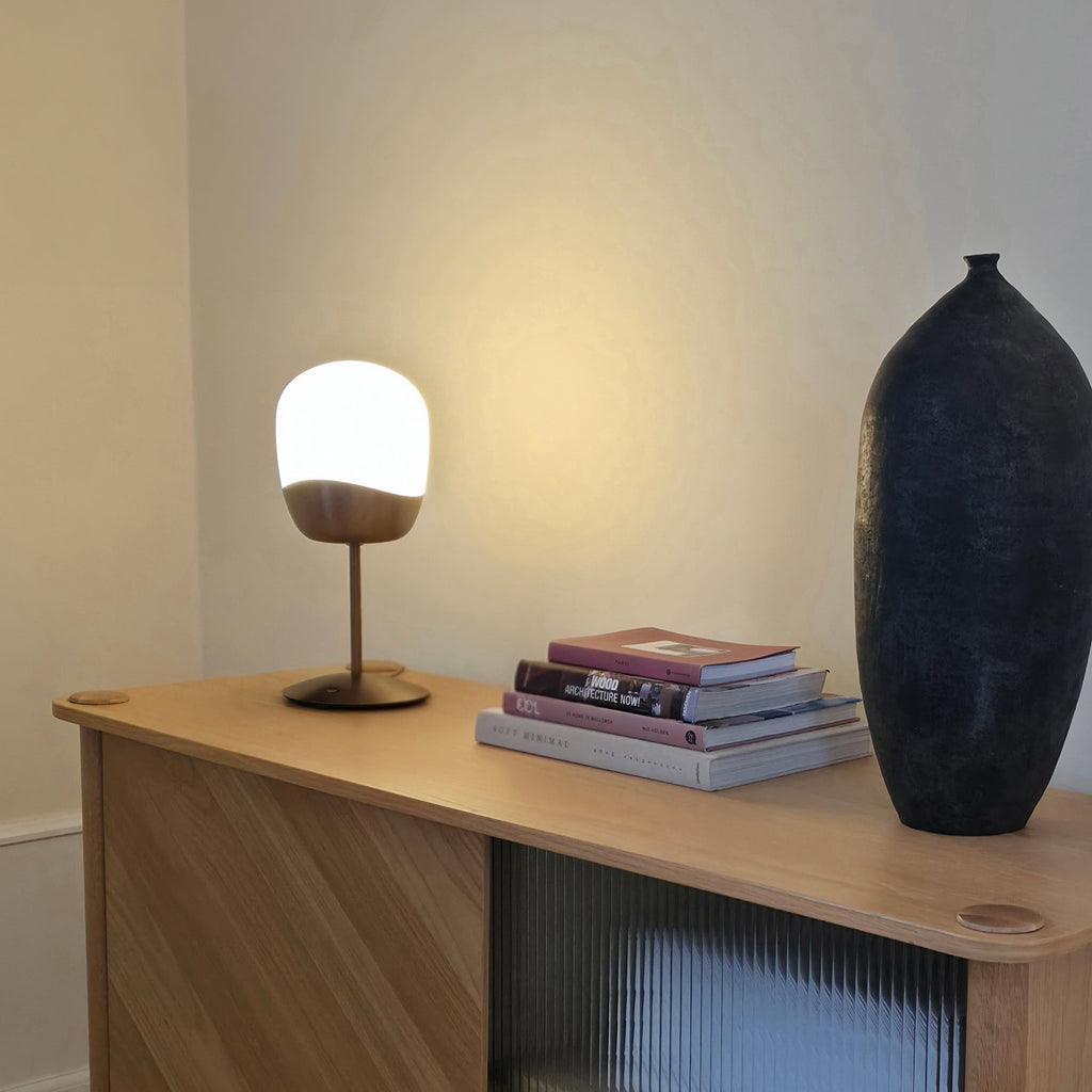 Spring Table is a tactile and sculptural table lamp designed for calm, atmospheric lighting. Crafted from mouthblown opal glass with a bold, asymmetrical brass base,...
