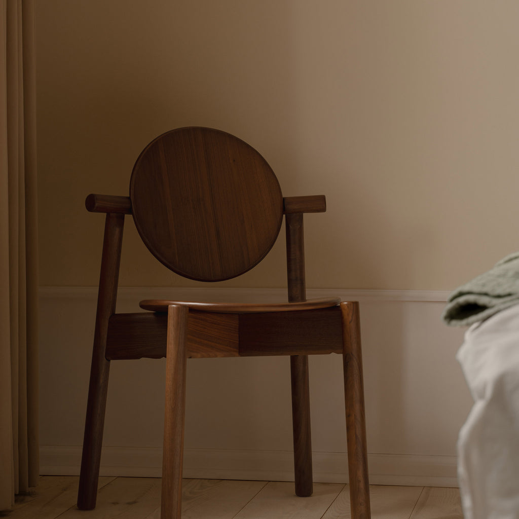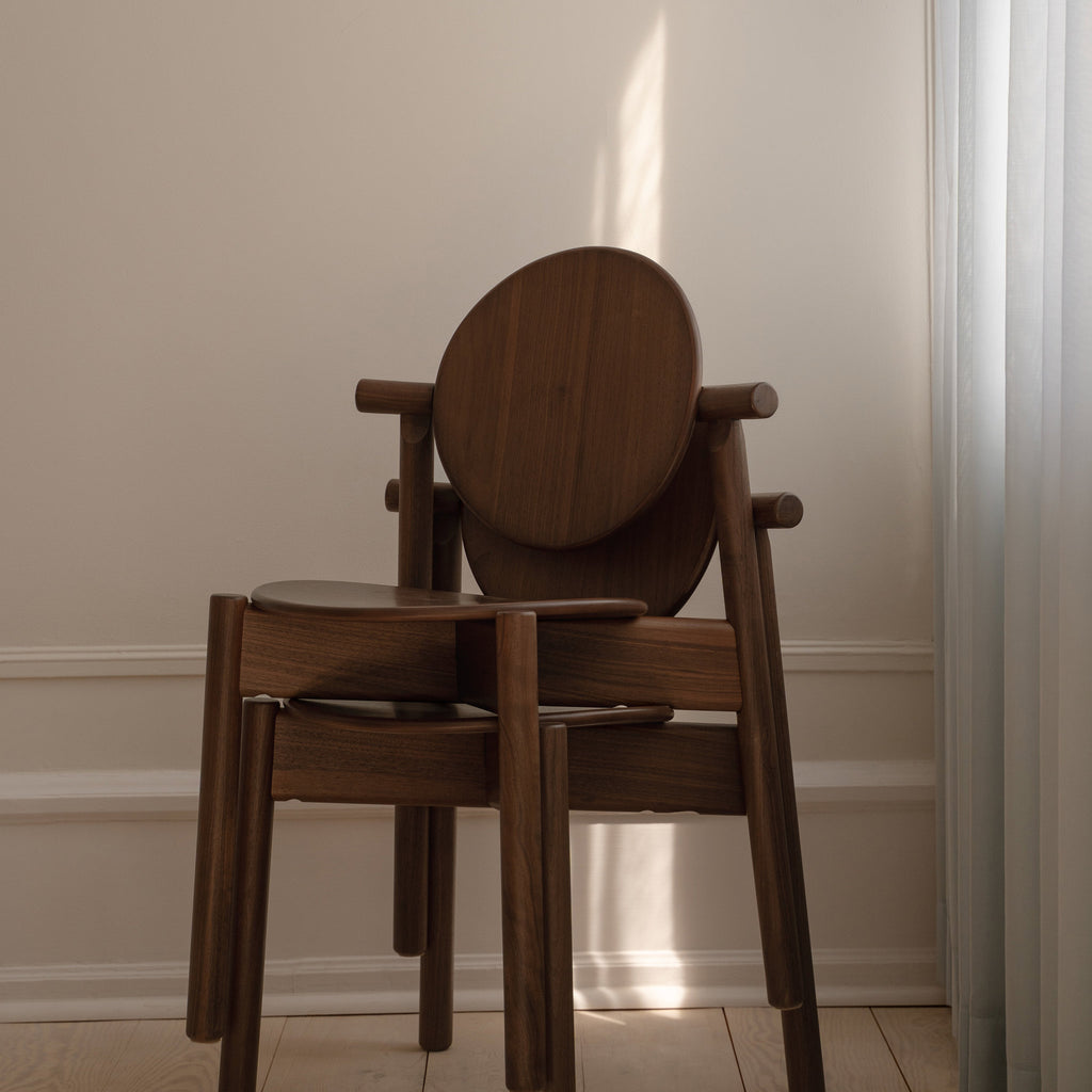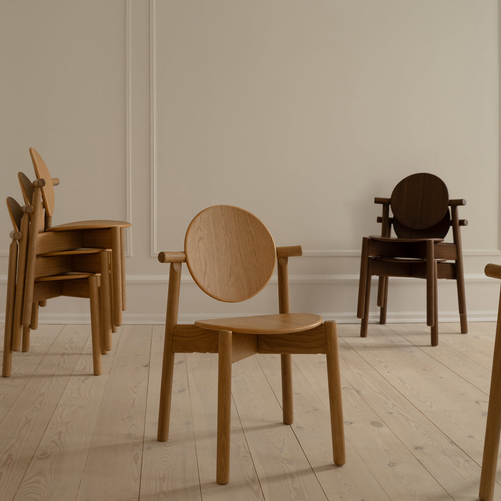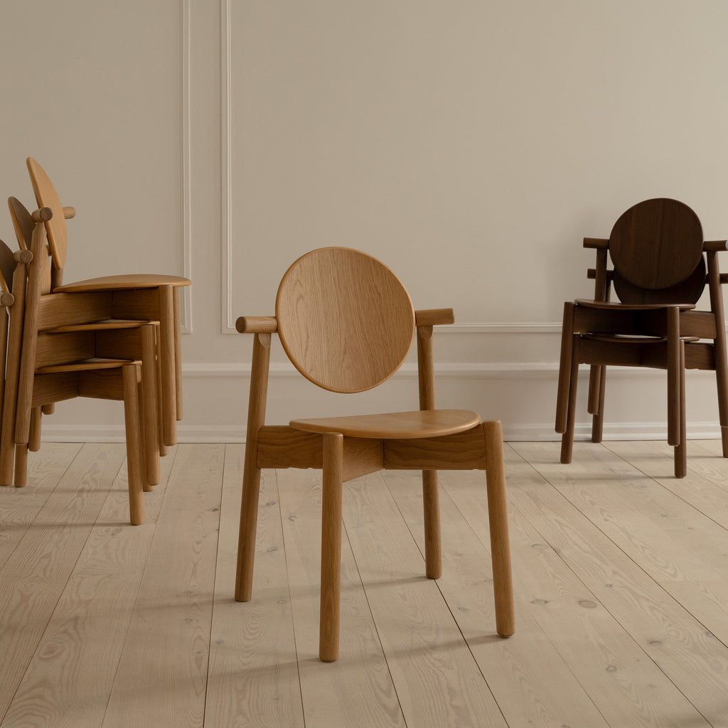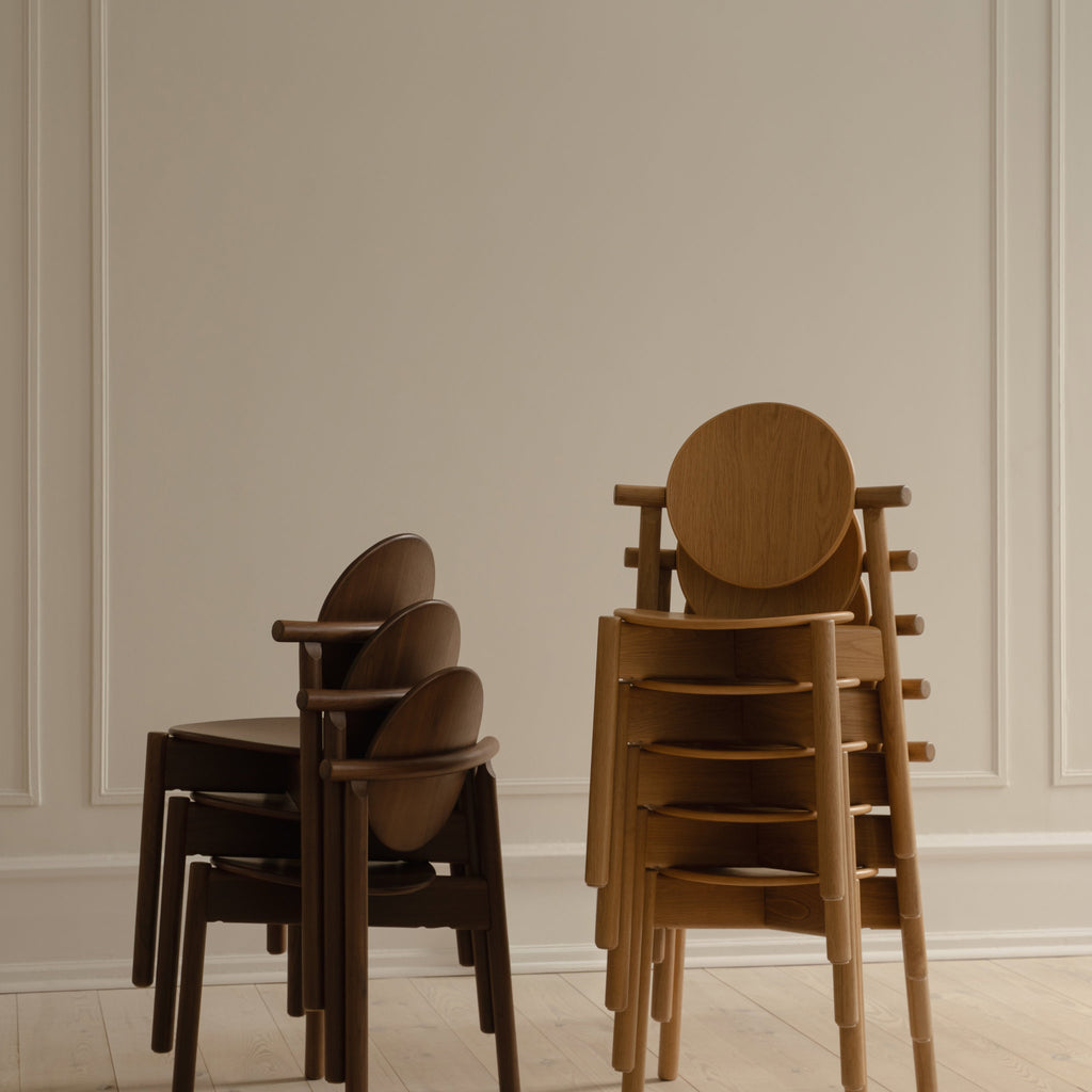 Heiko Dining Chair blends timeless craftsmanship with modern functionality. Available in oak and walnut, its stackable design and sculptural form make it a versatile choice for both private and professional spaces.