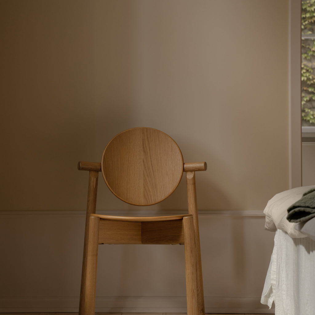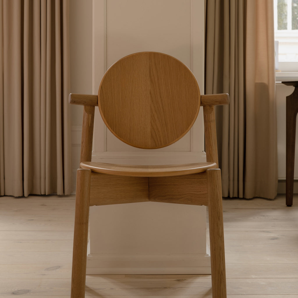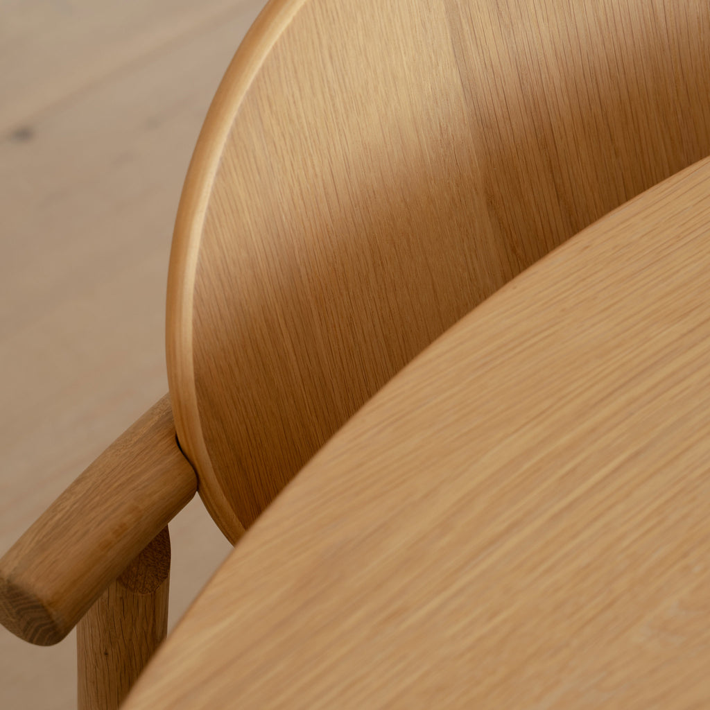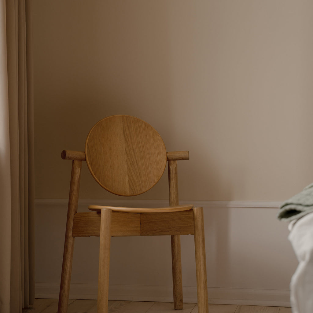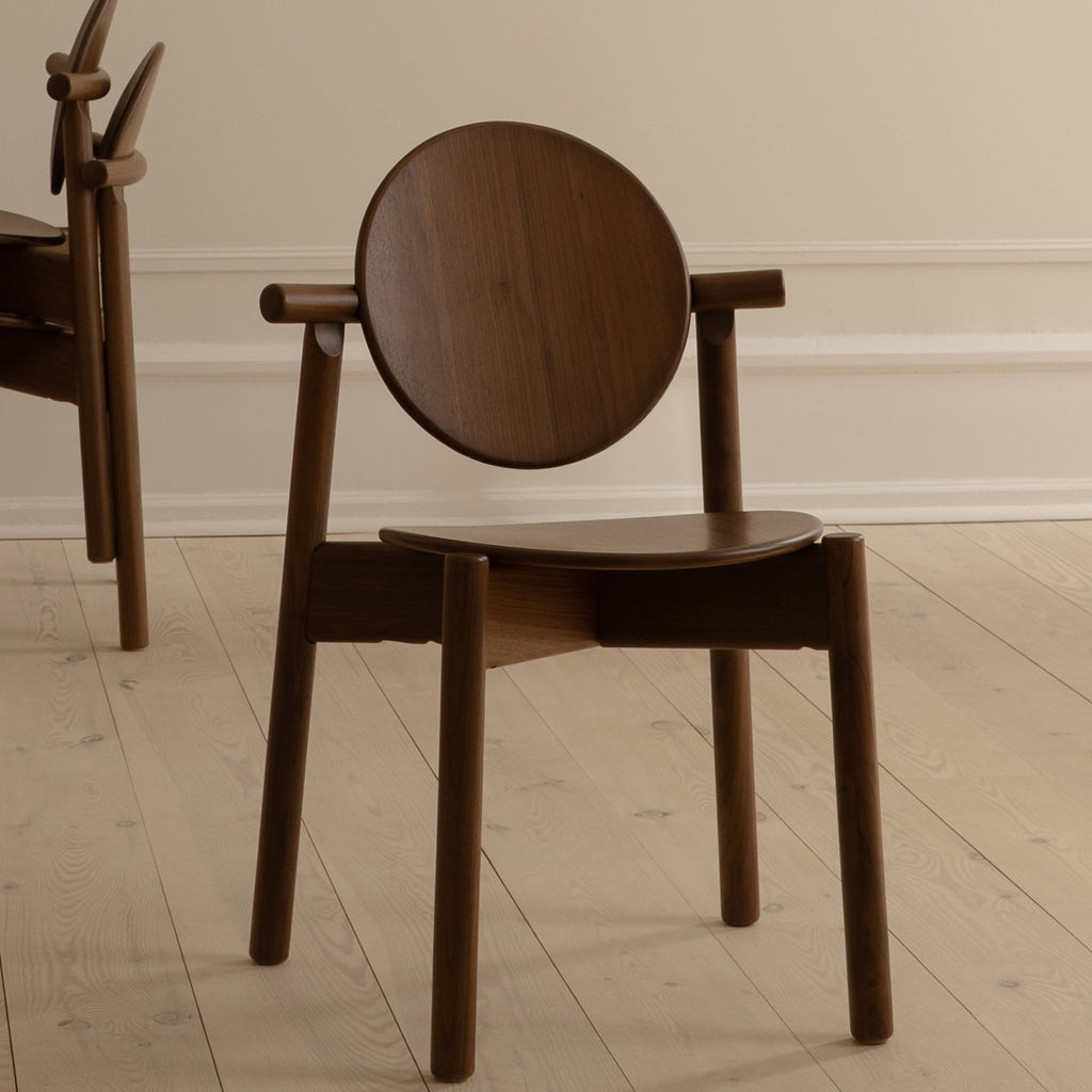 Heiko Dining Chair blends timeless craftsmanship with modern functionality. Available in oak and walnut, its stackable design and sculptural form make it a versatile choice for both private and professional spaces.