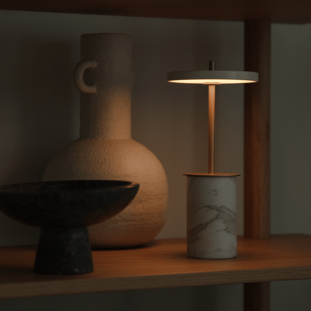 Designed for effortless elegance, the Asteria Move Mini is a compact, portable lamp that brings warm, ambient light to any setting. With four adjustable brightness levels, it lets you create the perfect atmosphere, whether for an intimate dinner or as a stylish accent piece. Its solid marble base adds a timeless, sculptural touch, making it a seamless blend of classic sophistication and modern versatility.