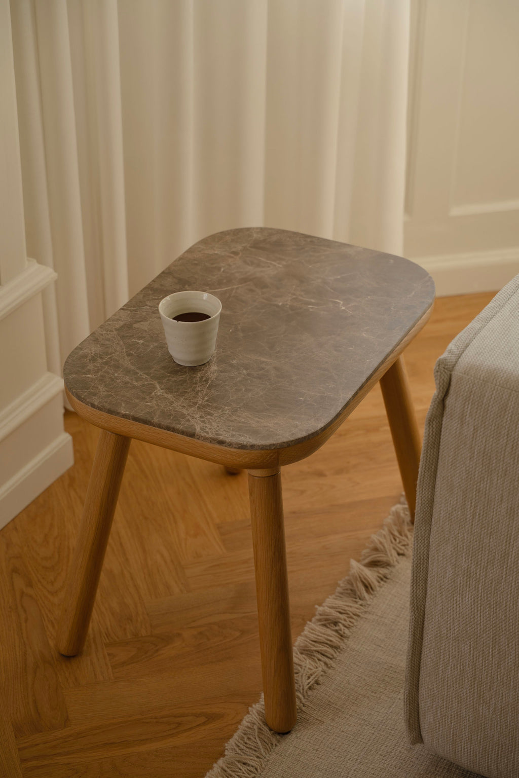 Paff is a versatile design piece that works wherever you need it - as a side table, a breakfast‑in‑bed tray, a creative station for kids, or a handy surface beside your favourite chair. With its sculptural form and refined materials, it brings both practicality and quiet elegance to everyday life.